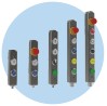 Zintegrowane sterowanie maszynami Konfiguruj blokady bezpieczeństwa oraz stacje sterownicze z wykorzystaniem kombinacji niestandardowo grawerowanych przycisków, lampek sygnalizacyjnych, przełączników oraz elementów zatrzymania awaryjnego.